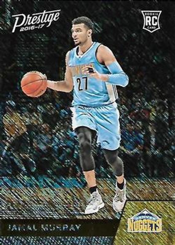 The Jamal Murray 2016 Prestige #157 Rain Rookie card is 1 of 22 Jamal Murray's card variations in the 2016 Prestige set being tracked by Sports Card Investor, including Base, Crystal, Horizon, Metallized, and Bonus Shots Red /75.