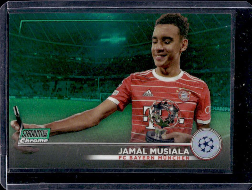 Jamal Musiala 2022 Topps Stadium Club Chrome UEFA Club Competitions #42 Green Refractor /99 RAW Price Guide