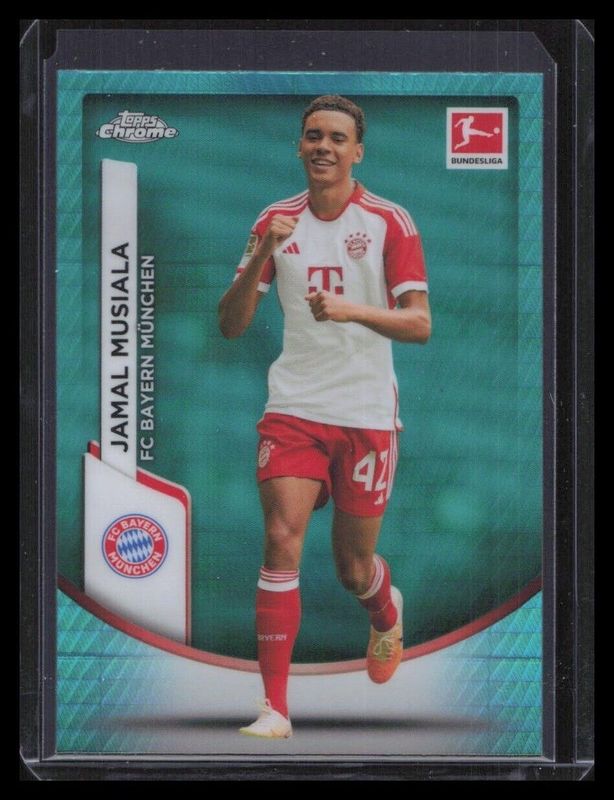 Jamal Musiala 2023 Topps Chrome Bundesliga #83 Aqua Prism Refractor RAW Price Guide