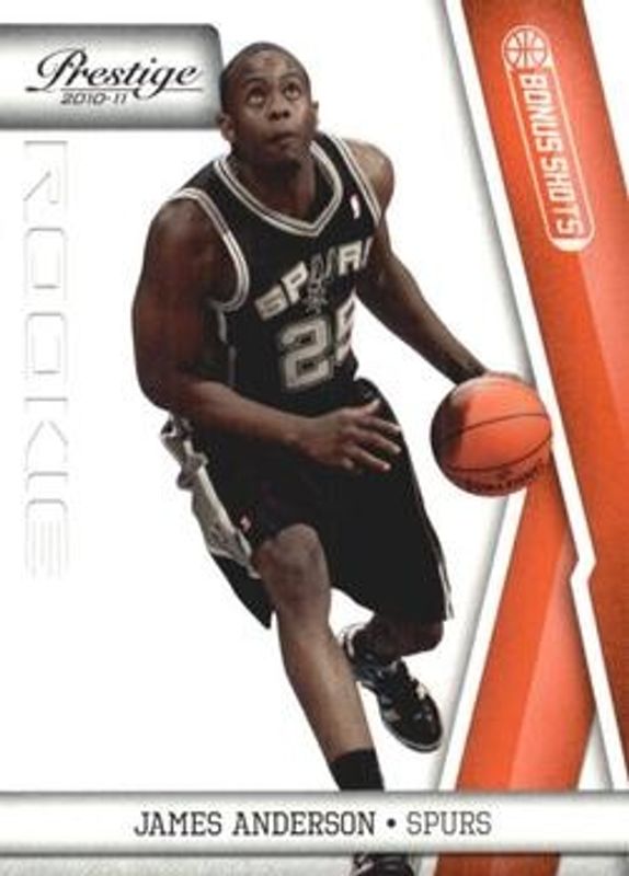 The James Anderson 2010 Prestige #170 Bonus Shots Orange /499 Rookie card is 1 of 30 James Anderson's card variations in the 2010 Prestige set being tracked by Sports Card Investor, including #229 Bonus Shots Orange /499, #170 Bonus Shots Gold /249, #229 Bonus Shots Gold /249, #229 Bonus Shots Purple /49, and #170 Bonus Shots Purple /49.