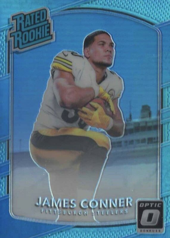 The James Conner 2017 Optic #172 Aqua /299 Rookie card in Raw condition has not changed in price in the last 30 days and was last sold for $6.00 .