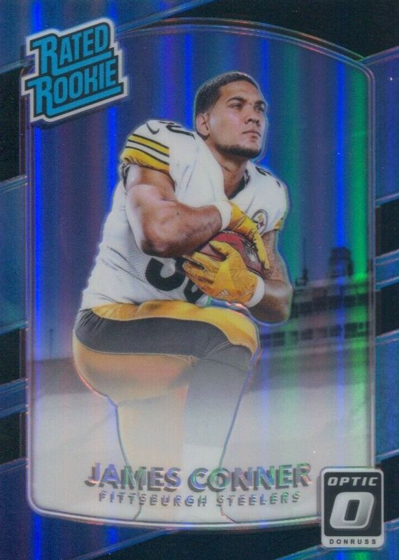 This card is 1 of 51 James Conner's card variations in the 2017 Optic set being tracked by Sports Card Investor, including Base, Bronze, Holo, Lime, and Pink.