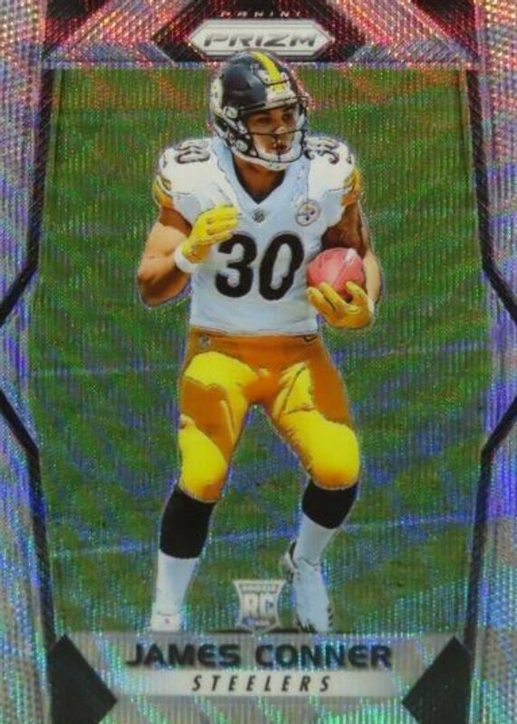 This card is 1 of 19 James Conner's card variations in the 2017 Prizm set being tracked by Sports Card Investor, including Disco, Green, Pink, Red White Blue, and Silver.