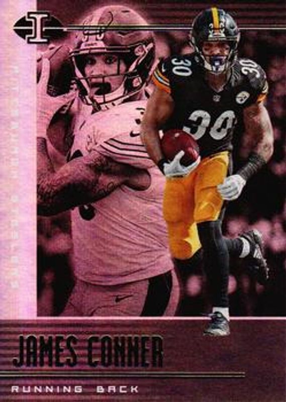The James Conner 2019 Illusions #11 Base card is 1 of 19 James Conner's card variations in the 2019 Illusions set being tracked by Sports Card Investor, including Retail, Trophy Collection Emerald, Trophy Collection Orange, Trophy Collection Sapphire, and Trophy Collection Gold /399.