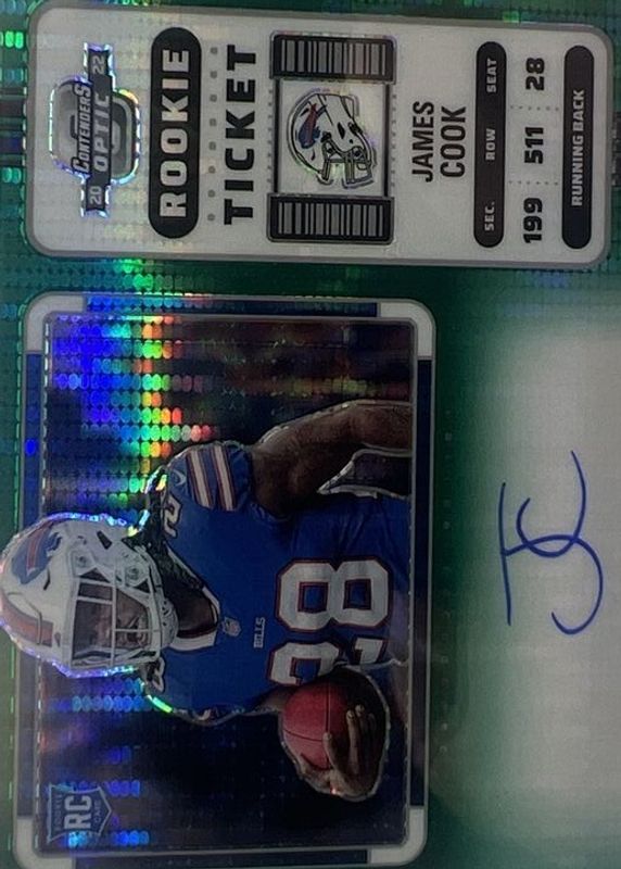 Auctions Ending Soon for James Cook 2022 Contenders Optic #123 Rookie Ticket Auto Variation - Green Pulsar /15 RAW