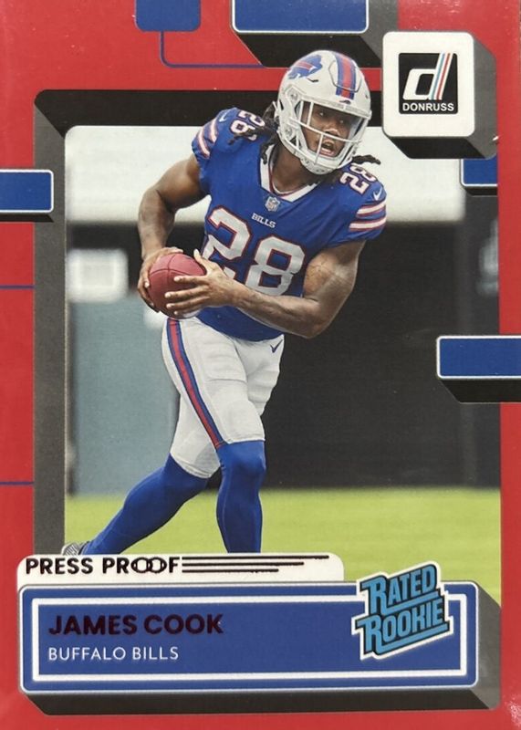 2022 DONRUSS JAMES COOK RATED ROOKIE RED PRESS PROOF-BILLS STUD RB-#315