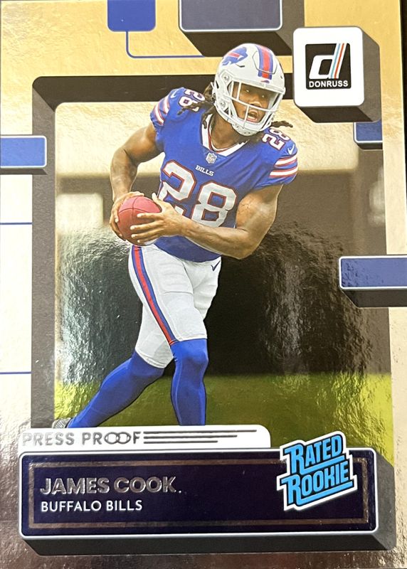 The James Cook 2022 Donruss #315 Press Proof Silver /100 Rookie card in Raw condition has not changed in price in the last 30 days and was last sold for $5.99 .