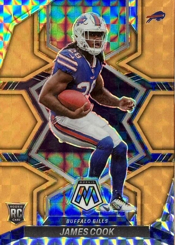 This card is 1 of 71 James Cook's card variations in the 2022 Mosaic set being tracked by Sports Card Investor, including Base, Green, No Huddle, Pink Camo, and Reactive Orange.