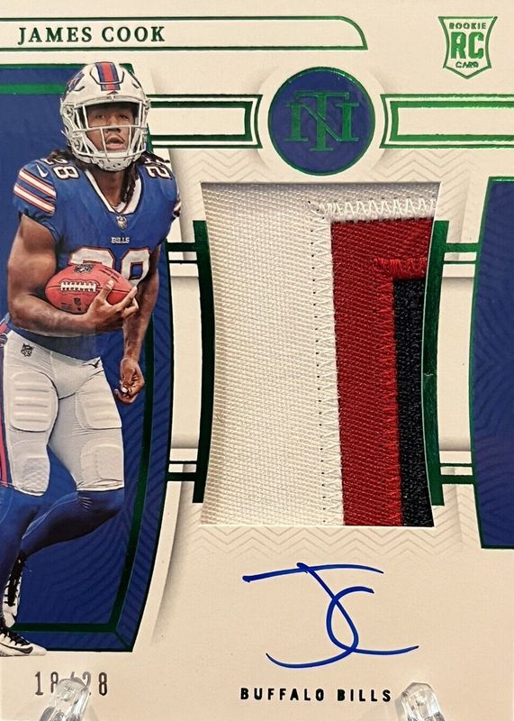 2022 National Treasures James Cook Green RPA RC 4-Color Patch AUTO /28 Bills🔥
