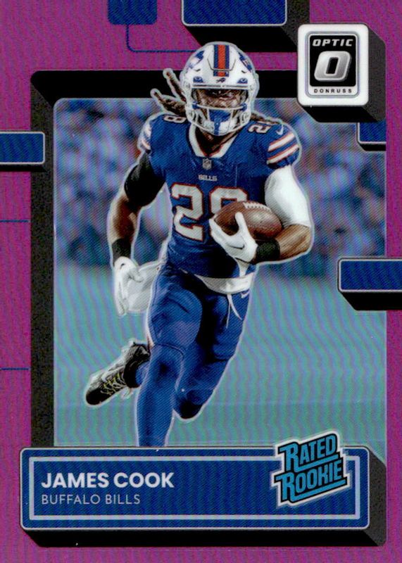 2022 DONRUSS OPTIC JAMES COOK RC HOLO PINK PRIZM RATED ROOKIE CARD NO. 215 BILLS