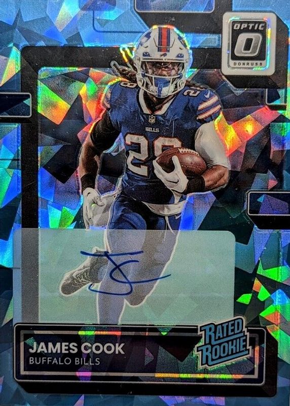 2022 Donruss Optic James Cook Rated Rookie RPS Auto Ice RC #5/15 Bills