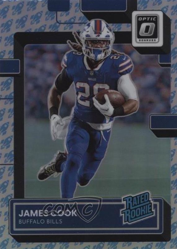 The James Cook 2022 Optic #215 Rocket /(SSP) Rookie card in Raw condition has not changed in price in the last 30 days and was last sold for $17.45 .