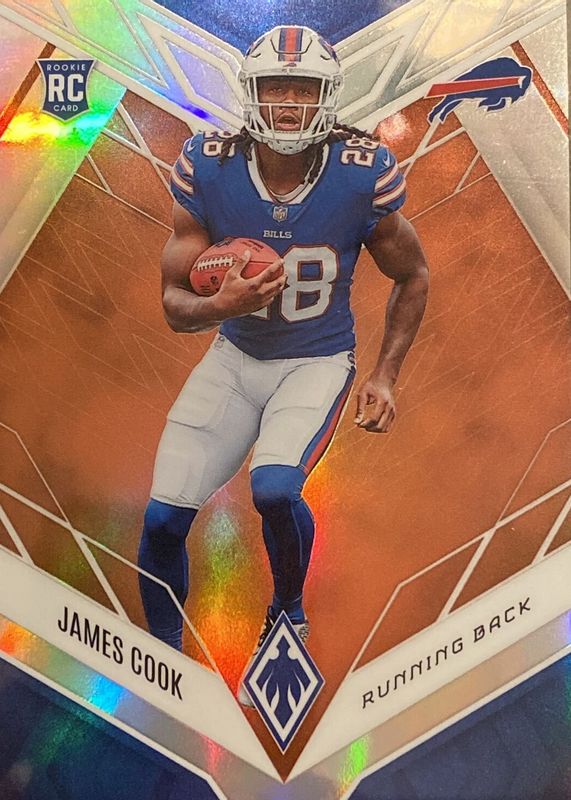 This card is 1 of 28 James Cook's card variations in the 2022 Phoenix set being tracked by Sports Card Investor, including Base, Color Burst, Onyx (/5), Red Mojo (/10), and Silver.