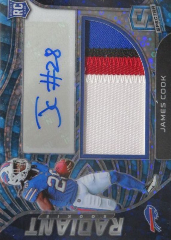 JAMES COOK 2022 SPECTRA RADIANT RPA ROOKIE PATCH NEON BLUE RC AUTO /50 Q2881