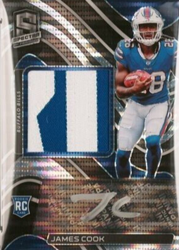 James Cook 2022 Spectra #222 Rookie Patch Auto - Neon Black Light /10 RAW Price Guide