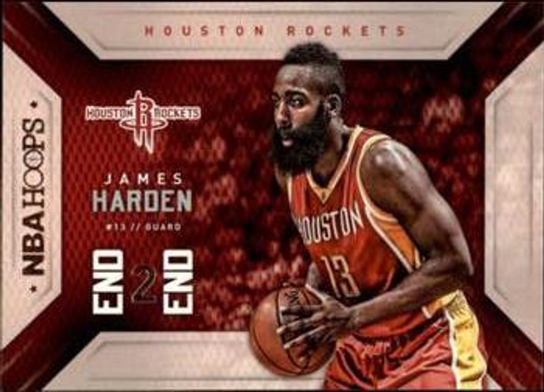 The James Harden 2015 Hoops #15 End 2 End card is 1 of 32 James Harden's card variations in the 2015 Hoops set being tracked by Sports Card Investor, including Base, Gold, Green, Red Back, and Blue /399.
