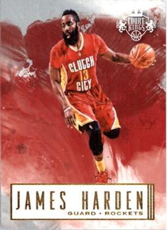 The James Harden 2016 Court Kings #3 Base card is 1 of 15 James Harden's card variations in the 2016 Court Kings set being tracked by Sports Card Investor, including Sapphire /25, Masterpiece /1, 5x7 Box Toppers Panoramics, Maestros, and Portraits /175.