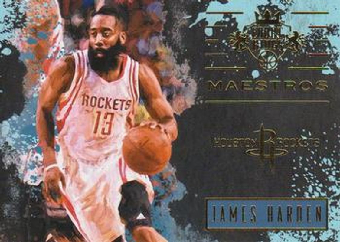 The James Harden 2016 Court Kings #23 Maestros card is 1 of 15 James Harden's card variations in the 2016 Court Kings set being tracked by Sports Card Investor, including Base, Sapphire /25, Masterpiece /1, 5x7 Box Toppers Panoramics, and Portraits /175.