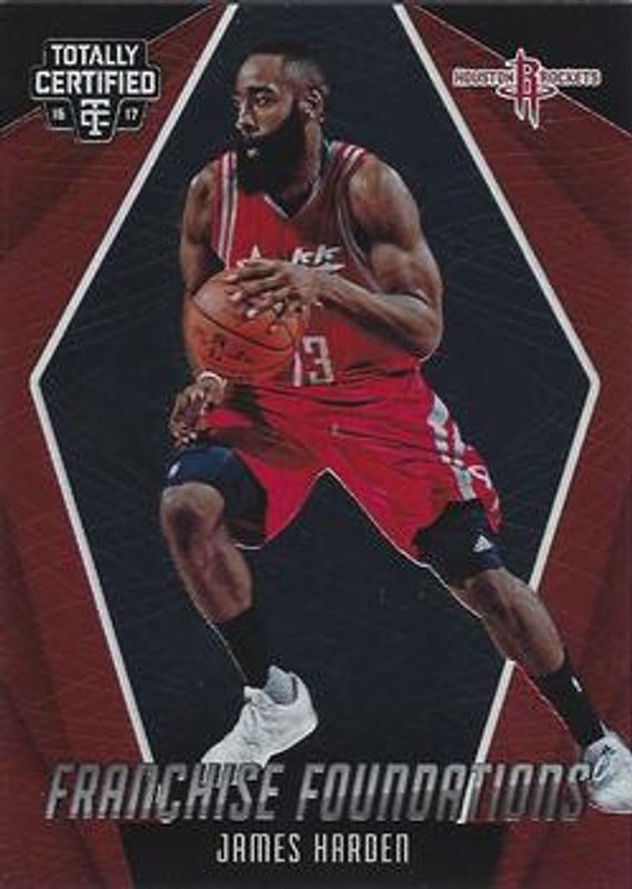 The James Harden 2016 Totally Certified #2 Franchise - Foundations card is 1 of 19 James Harden's card variations in the 2016 Totally Certified set being tracked by Sports Card Investor, including Base, Red /199, Blue /99, Orange /60, and Camo /25.