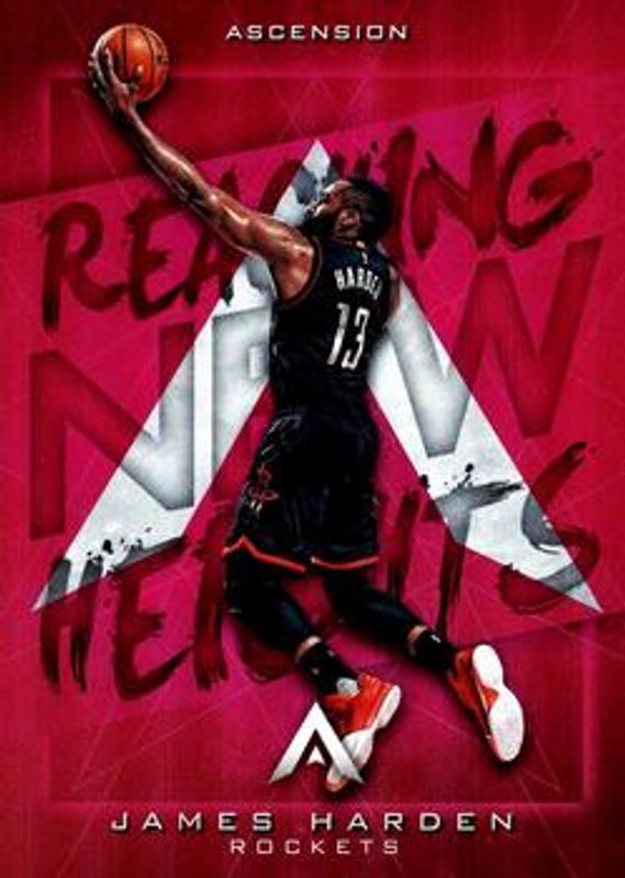 The James Harden 2017 Ascension #RN-JH Reaching New Heights card is 1 of 14 James Harden's card variations in the 2017 Ascension set being tracked by Sports Card Investor, including #90a Base, #90b Base, #90 Blue /125, #90 Red /75, and #90 Green /25.