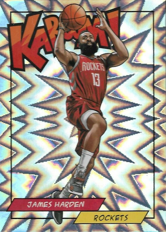 The James Harden 2018 Panini Rewards #K-JH Kaboom! /(SSP) card in Raw condition has moved down -$55.00 (-11.0%) in the last 30 days and was last sold for $445.00 .