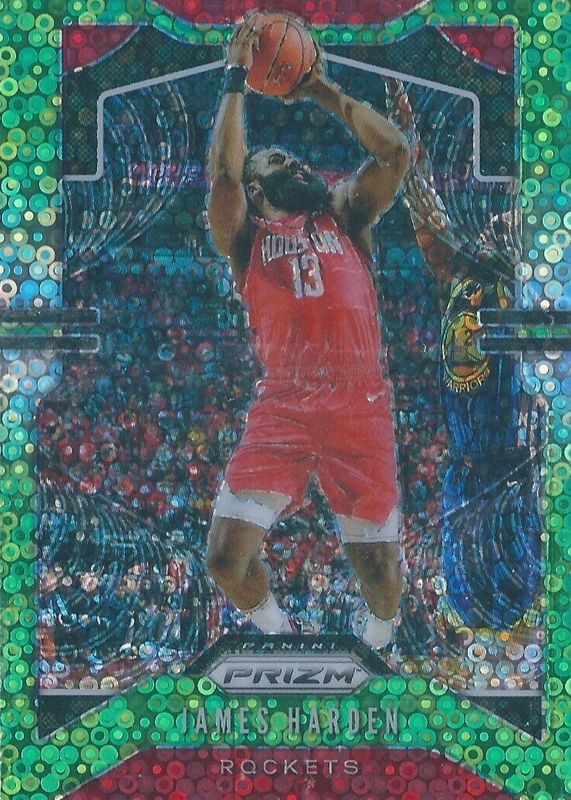 This card is 1 of 46 James Harden's card variations in the 2019 Prizm set being tracked by Sports Card Investor, including Base, Choice Blue Yellow Green, Fanatics Green Ice, FOTL Blue Shimmer, and Green.