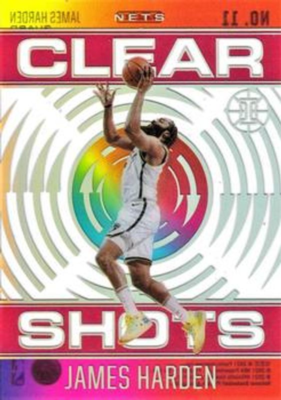 The James Harden 2020 Illusions #11 Clear Shots - Pink card is 1 of 72 James Harden's card variations in the 2020 Illusions set being tracked by Sports Card Investor, including Base, Asia Trophy Collection Base, Asia Trophy Collection Red, Trophy Collection Bronze, and Trophy Collection Emerald.
