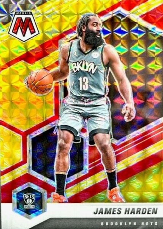 This card is 1 of 63 James Harden's card variations in the 2020 Mosaic set being tracked by Sports Card Investor, including Base, Fast Break, Gold Wave, Green, and Green Ice.