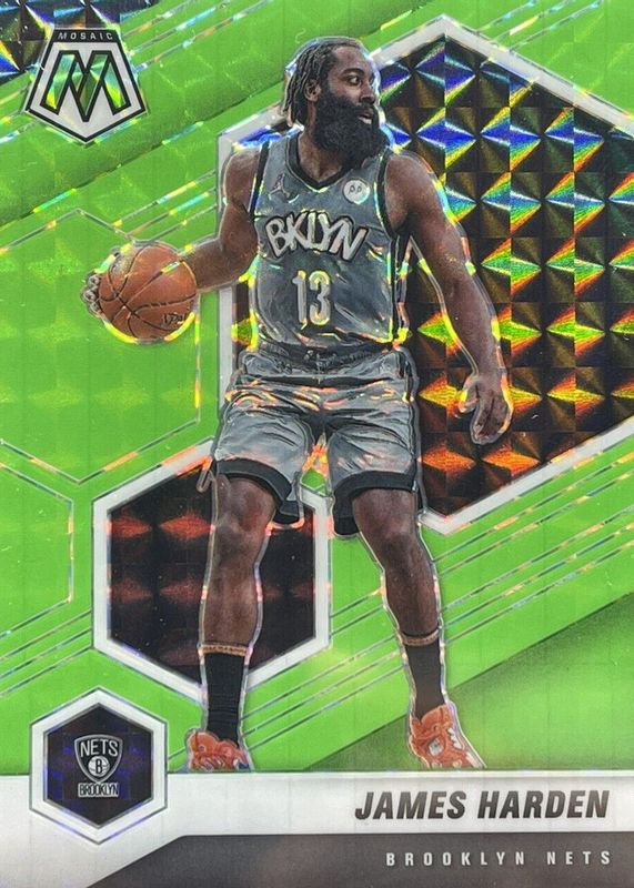 This card is 1 of 63 James Harden's card variations in the 2020 Mosaic set being tracked by Sports Card Investor, including Base, Fast Break, Gold Wave, Green, and Green Ice.