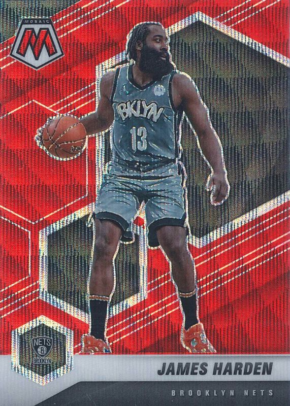 James Harden 2020-21 Mosaic Red Wave Prizm Brooklyn Nets #173