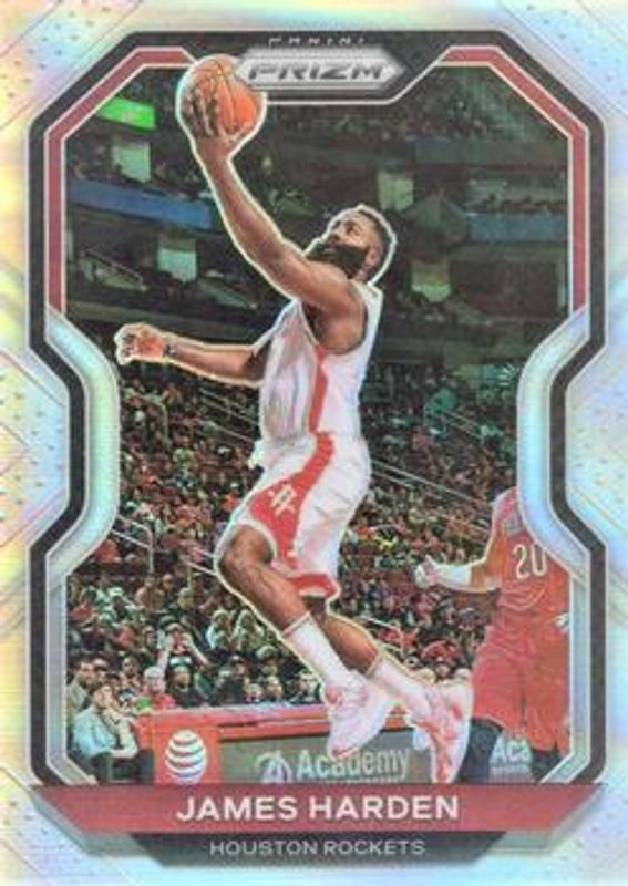 The James Harden 2020 Prizm #112 Silver card is 1 of 79 James Harden's card variations in the 2020 Prizm set being tracked by Sports Card Investor, including Choice Blue Yellow Green, Fast Break, Green, Green Ice, and Hyper.