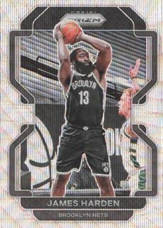 The James Harden 2021 Prizm #44 Silver Wave card is 1 of 96 James Harden's card variations in the 2021 Prizm set being tracked by Sports Card Investor, including #44 Base, #44b Base, #44 Blue NBA 75th Anniversary, #44 Blue Wave, and #44 Choice Blue Yellow Green.