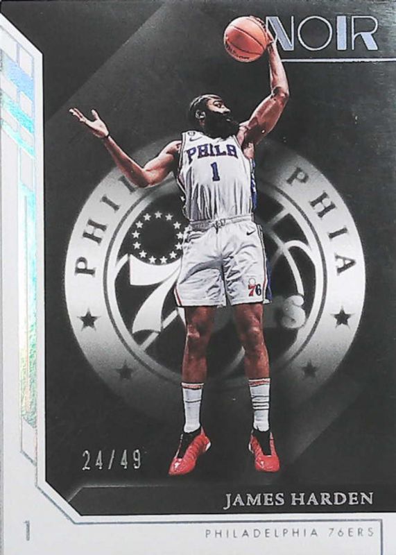 This card is 1 of 13 James Harden's card variations in the 2022 Noir set being tracked by Sports Card Investor, including Association Edition /99, Icon Edition /99, Statement Edition /25, Icon Edition - Holo Silver /49, and Statement Edition - FOTL /11.
