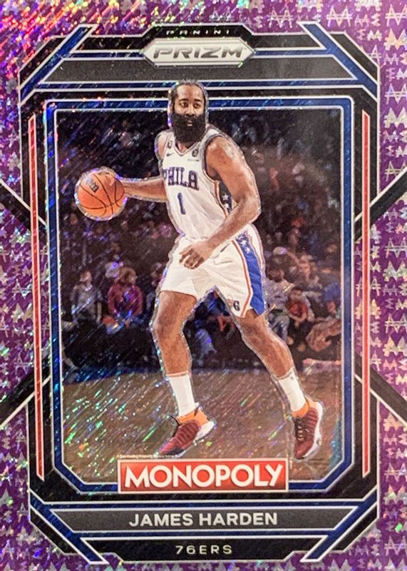 2022-23 Prizm Monopoly JAMES HARDEN Purple Money Shimmer /50 #68 Clippers, 76ers