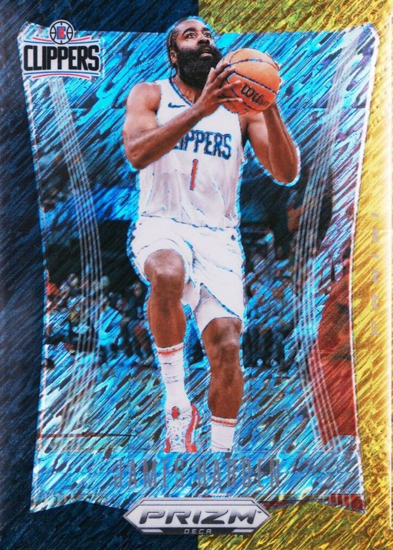 This card is 1 of 28 James Harden's card variations in the 2023 Prizm Deca set being tracked by Sports Card Investor, including Base, Silver, Red /199, Blue /149, and Purple /99.