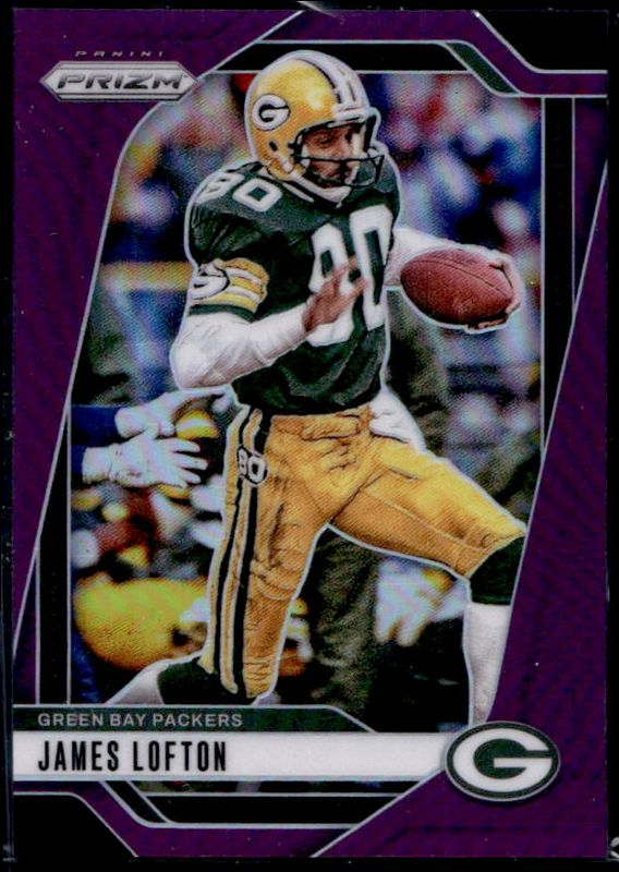 The James Lofton 2024 Prizm #109 Purple /125 card is 1 of 84 James Lofton's card variations in the 2024 Prizm set being tracked by Sports Card Investor, including Base, Choice Blue Yellow Green, Choice Silver, Disco, and Green.