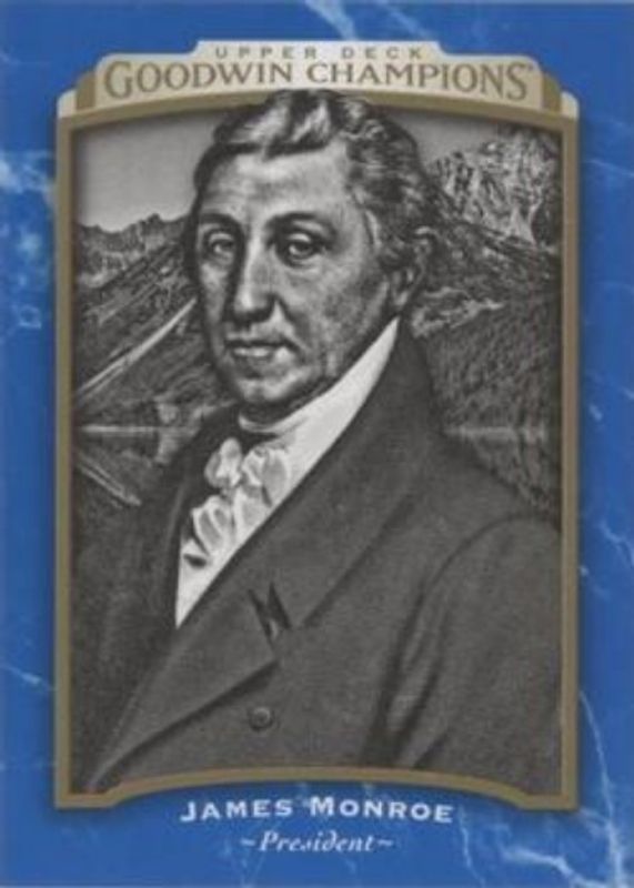 The James Monroe 2017 Upper Deck Goodwin Champions #105 Royal Blue card is 1 of 43 James Monroe's card variations in the 2017 Upper Deck Goodwin Champions set being tracked by Sports Card Investor, including #5 Base, #55 Base, #105 Base, Blank Back Mini, and #105 Canvas Minis.