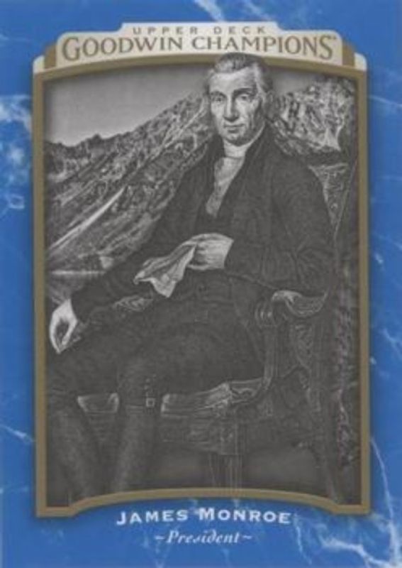 The James Monroe 2017 Upper Deck Goodwin Champions #5 Royal Blue card is 1 of 43 James Monroe's card variations in the 2017 Upper Deck Goodwin Champions set being tracked by Sports Card Investor, including #5 Base, #55 Base, #105 Base, Blank Back Mini, and #105 Canvas Minis.
