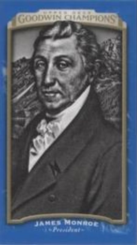 The James Monroe 2017 Upper Deck Goodwin Champions #105 Royal Blue Minis card is 1 of 43 James Monroe's card variations in the 2017 Upper Deck Goodwin Champions set being tracked by Sports Card Investor, including #5 Base, #55 Base, #105 Base, Blank Back Mini, and #105 Canvas Minis.