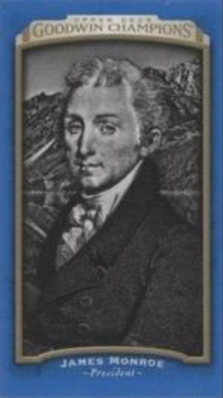 The James Monroe 2017 Upper Deck Goodwin Champions #55 Royal Blue Minis card is 1 of 43 James Monroe's card variations in the 2017 Upper Deck Goodwin Champions set being tracked by Sports Card Investor, including #5 Base, #55 Base, #105 Base, Blank Back Mini, and #105 Canvas Minis.