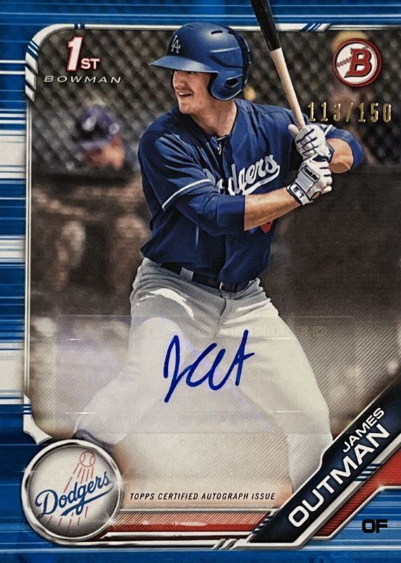 2019 BOWMAN PROSPECT AUTOGRAPH BLUE #145/150 JAMES OUTMAN **NO RESERVE**