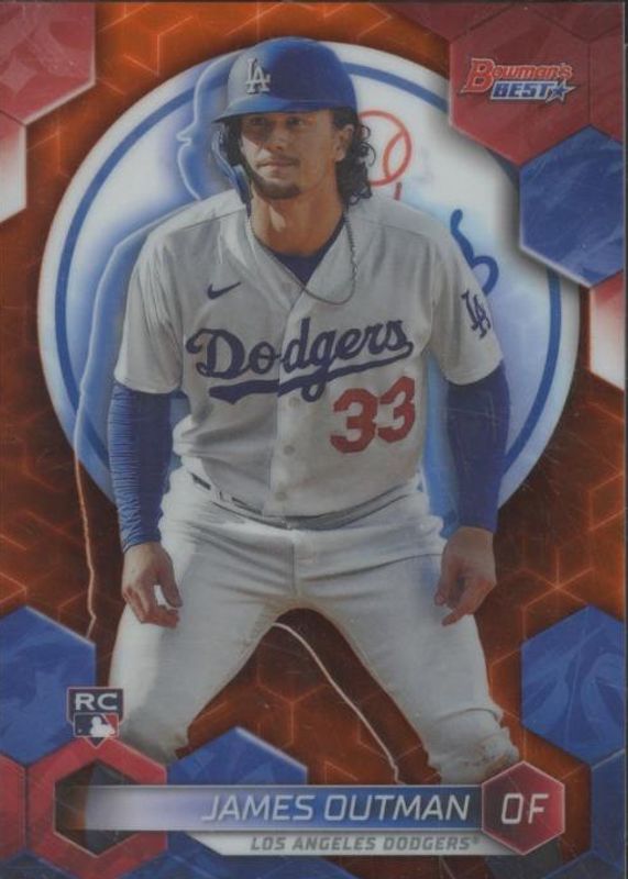 This card is 1 of 25 James Outman's card variations in the 2023 Bowman's Best set being tracked by Sports Card Investor, including Base, Refractor, Wave Refractor, Mini-Diamond Refractor /299, and Purple Refractor /250.