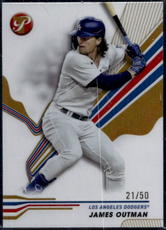 The James Outman 2024 Topps Pristine #158 Gold Refractor /50 card is 1 of 26 James Outman's card variations in the 2024 Topps Pristine set being tracked by Sports Card Investor, including Base, Pristine Refractor, Refractor, Green Refractor /150, and Pristine Purple Refractor /99.
