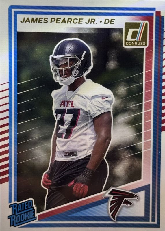 This card is 1 of 36 James Pearce Jr.'s card variations in the 2025 Donruss set being tracked by Sports Card Investor, including Base, Aqueous Test, Jersey Number (/27), No Name, and Press Proof Blue.