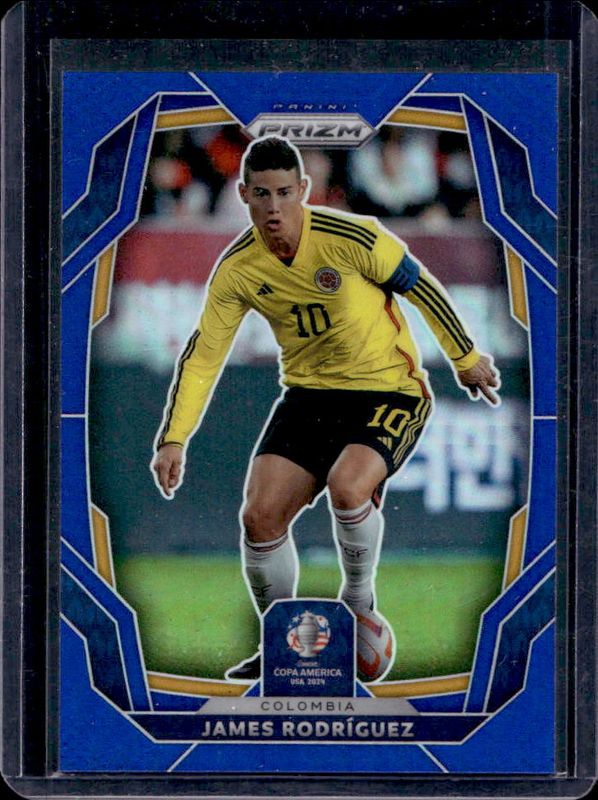The James Rodriguez 2024 Prizm Copa America #49 Blue /110 card is 1 of 38 James Rodriguez's card variations in the 2024 Prizm Copa America set being tracked by Sports Card Investor, including Base, Green Ice, Green Wave, Hyper, and Ice.