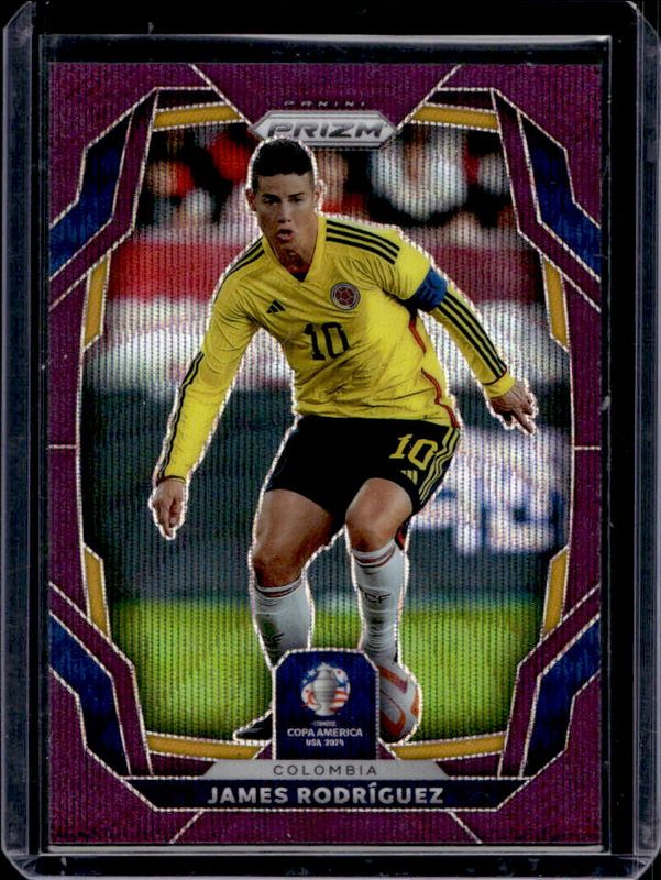 The James Rodriguez 2024 Prizm Copa America #49 Purple Wave /99 card is 1 of 38 James Rodriguez's card variations in the 2024 Prizm Copa America set being tracked by Sports Card Investor, including Base, Green Ice, Green Wave, Hyper, and Ice.