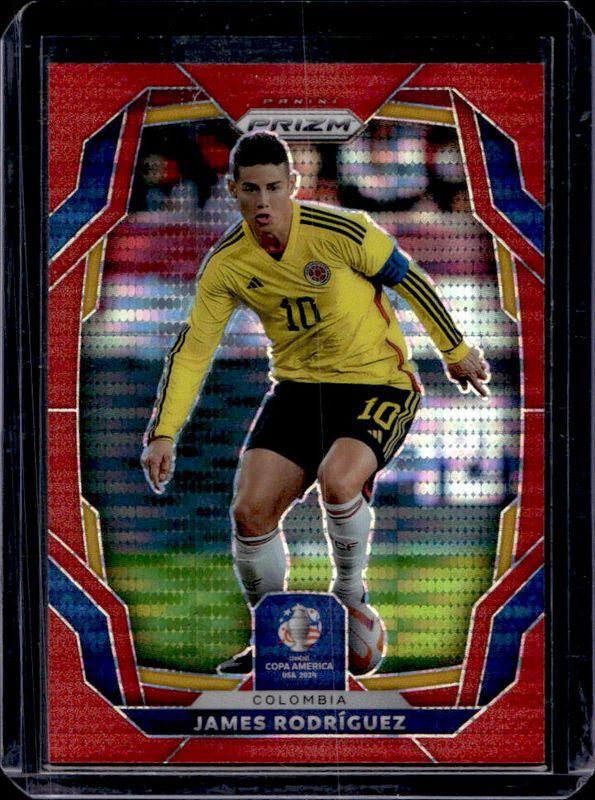 The James Rodriguez 2024 Prizm Copa America #49 Red Pulsar /125 card is 1 of 38 James Rodriguez's card variations in the 2024 Prizm Copa America set being tracked by Sports Card Investor, including Base, Green Ice, Green Wave, Hyper, and Ice.