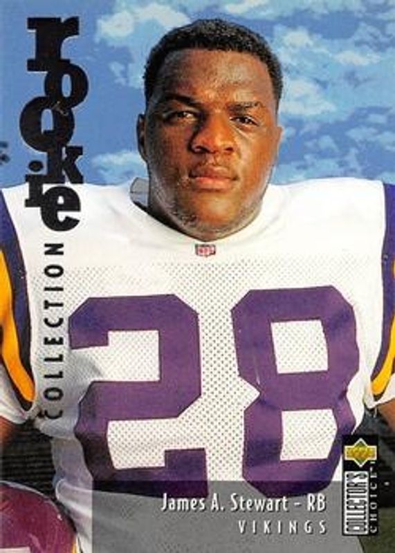 The James Stewart 1995 Upper Deck Collector's Choice Update #U35 Silver Rookie card is 1 of 5 James Stewart's card variations in the 1995 Upper Deck Collector's Choice Update set being tracked by Sports Card Investor, including #U28 Base, #U35 Base, #U28 Gold, and #24 Stick Ums.