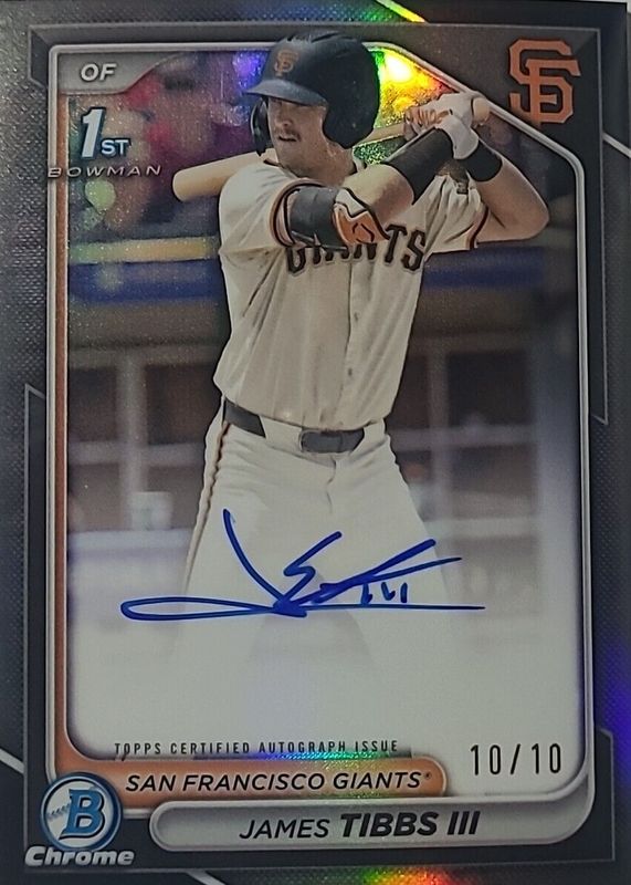 Recent Sales of James Tibbs III 2024 Bowman Draft #CPA-JT Chrome DP Auto - Black Refractor /10 (1st) Raw