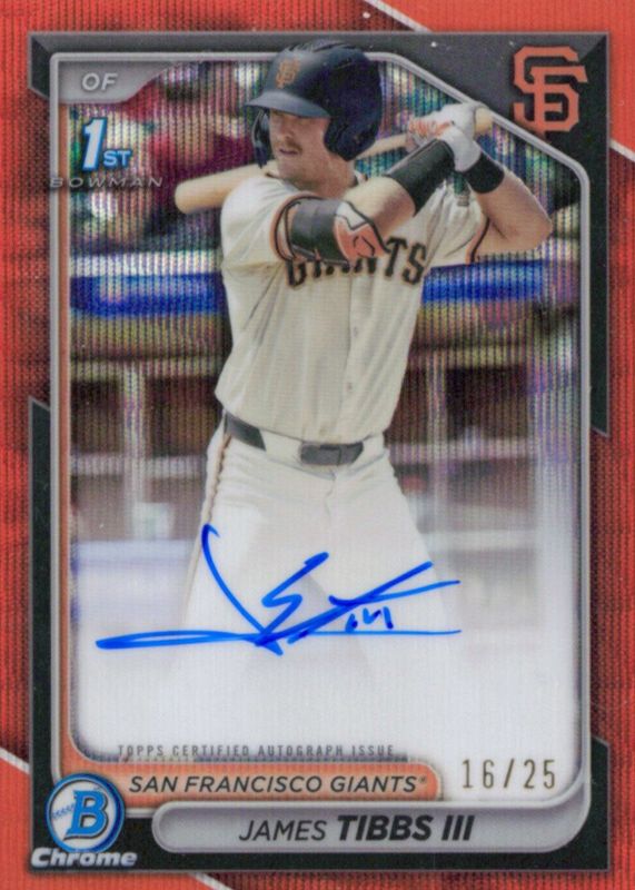 Recent Sales of James Tibbs III 2024 Bowman Draft #CPA-JT Chrome DP Auto - Orange Wave Refractor /25 (1st) Raw